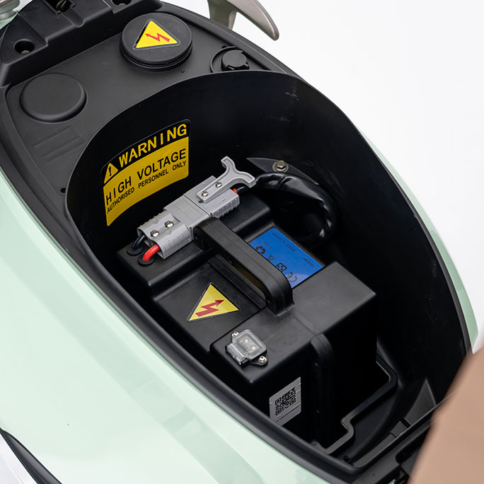 Carga fácil y movilidad sin límites gracias a su batería accesible desde el asiento.